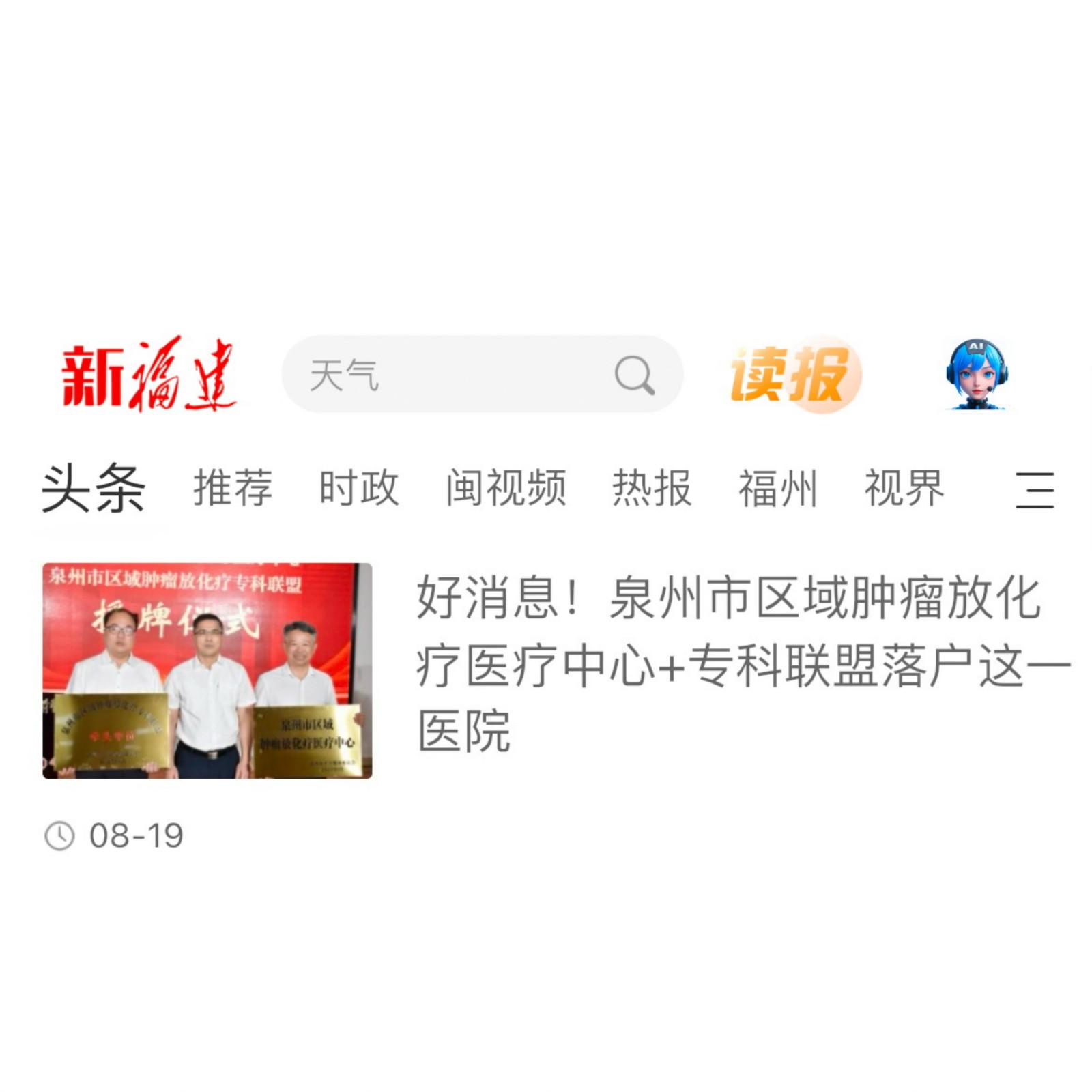 权威报道!新福建app发布《泉州市区域肿瘤放化疗医疗中心+专科联盟落户这一医院》